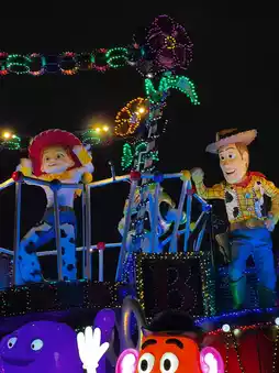 A gorgeous parade with all the Disney characters, including Mickey, Minnie, Aladdin, and Toy Story!