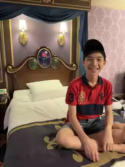 Benson has loved castles and princesses since he was a child, and his two sons have booked a Beauty and the Beast themed room at the Tokyo Disneyland Theme Park Hotel in addition to the Tokyo Toy Story Hotel in order to fulfill their mother's dream.