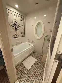 The room is very well equipped with children-specific mouthwash cups, toothbrushes, hair ties, etc. The room has two TVs, one in front of the bed and the other in the side hall.