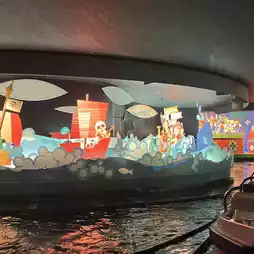 📍Daytime: The blue-and-white castle stands proud against a clear sky, surrounded by cheerful music and joyful visitors. It's a classic photo spot — with churros in one hand and Mickey ears on your head!