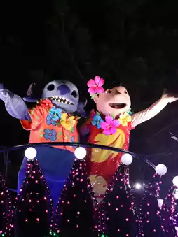 This nighttime parade, called 'Tokyo Disneyland Electrical Parade Dreamlights,' features a dazzling display of lights and various Disney characters. The lights are incredibly beautiful and create a magical atmosphere. Additionally, many characters wave enthusiastically, so if you have a favorite character, try waving with their plush toy—it might catch their attention!