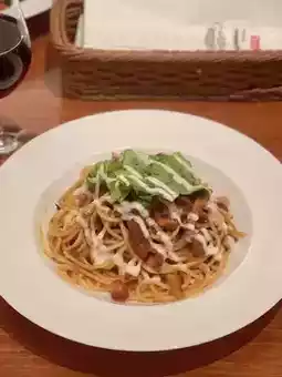 We chose to have dinner at Eastside Cafe, a Western restaurant within the park. We didn't have reservations, so we were seated after about 15 minutes. 🙈 We ordered the pasta set, which included an appetizer and pasta. The presentation was nice, and the food was just okay. 😅