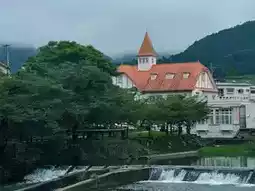 The building has a unique design that combines Japanese and Western styles, and it feels like you've traveled back in time to an old-fashioned hot spring town. 🎶