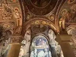 Built in the 11th century, the church's dome depicts scenes of Jesus' birth, baptism, crucifixion, and resurrection. The vibrant colors and intricate brushwork make it seem as though time has stood still. Gazing up at the layered frescoes, one can almost feel the ancient monks painting by the faint glow of candlelight, their faith immortalized in every stroke.