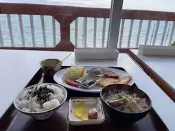 The inn is located along a beautiful white beach, and the sea is right there! The view from the window is so close that you'll think, "I'm not on the sea, am I?" Apparently, the inn has produced many folk singers, and there is a stage in the dining room on the first floor, where you can enjoy live performances during the day. 😃