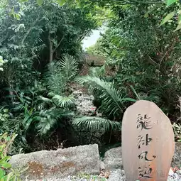 This is the place where the energy of the dragon god passes from beyond the sea. You can catch a glimpse of the sea at the end of the green tunnel, and feel the pure energy flowing through it.