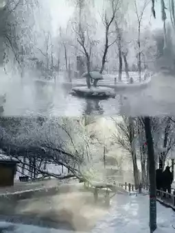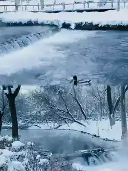 Snowy mountains and forests, 🍀small bridges and flowing water, and thick frost and rime create a fairytale-like world