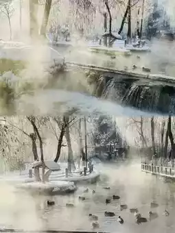 ❣️Shuimogou Park after snow is like a fairyland. If you want to take photos in Urumqi, this is the place to go.🦆The ducks and swans are so cute. The water here is hot spring water, creating a fairyland atmosphere. It's a great place to take photos.🥹