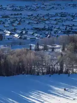 - Hemu after snowfall, a thousand miles of ice, beautiful scenery awaits you to capture! Simple wooden houses are scattered across the mountains, rustic and quiet.