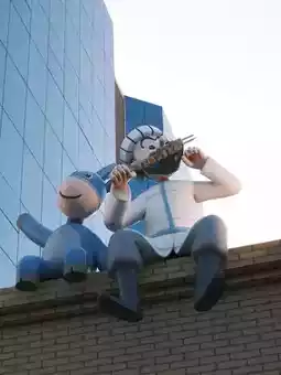As soon as you enter, look up to see the rooftop statue of (Afanti).