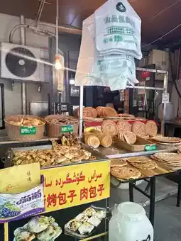 • 🍢 Xinjiang snacks – lamb skewers, naan, dried fruits, nuts
