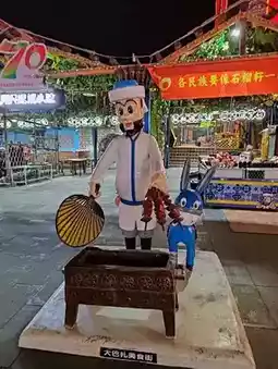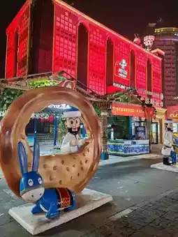 At the exotic Xinjiang International Grand Bazaar, adorable cartoon sculptures can be seen everywhere—Afanti and his loyal companion, the little donkey. This famous folk wit, often dressed in traditional attire, greets visitors with a smile or stands beside vibrant neon lights alongside his blue-eared "comic" donkey, sometimes holding local delicacies. These lively sculptures not only add fun and vitality to the bazaar but also allow tourists to immerse themselves in a rich cultural atmosphere and a touch of childlike delight while exploring and shopping.