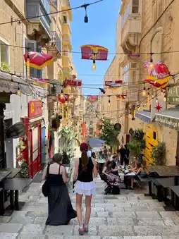 A picturesque street known for its Baroque-style architecture and unique colorful balconies. The buildings on both sides are constructed from local limestone, creating a distinctive historical atmosphere. At the end of the street, you'll find a Baroque-style domed church.