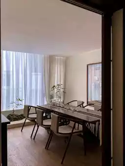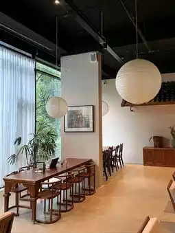 The atmosphere is calm and refined, with natural wood tones, soft lighting, and curated greenery that evoke a sense of quiet elegance. Whether you’re seated by a window with sunlight filtering through linen curtains or tucked into a quiet corner with a book, the space encourages stillness and presence.
