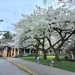 This was my first trip of the year. I arrived in Vancouver on April 11th. As soon as I arrived, my friend took me to see the cherry blossoms in the east of Vancouver. There was a pure white cherry tree in full bloom.