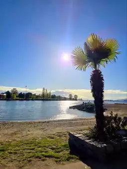 English Bay Beach is perfect for a sunny day stroll 🚶♀️, a refreshing swim 🏊♂️, or just soaking in the gorgeous sunset views 🌅✨. The sandy beach stretches along the bustling West End 🏙️, right near the heart of the city ❤️.