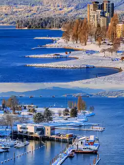 Turn a corner on the Seawall Trail to encounter snow-capped mountains and the bay