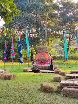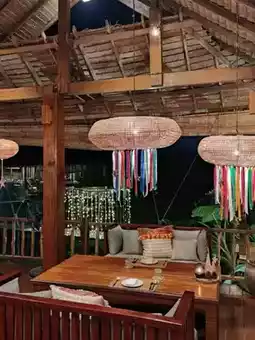 Atmosphere: A great place to take photos with the wooden bridge, rice fields, and VangVieng mountain range. It is very beautiful. It is a famous landmark of VangVieng. This place is both a resort and a restaurant. Only customers can come in to take photos. You can stay or eat.