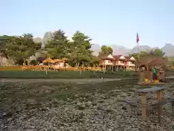 Atmosphere: The atmosphere is fantastic. In front of the accommodation is the Nam Song River, and behind it are stunning mountains. During the day, you can sit by the river and relax. In the morning, you can enjoy the mist behind the accommodation. It's an amazing experience. The rooms are small, but the view is worth it. If you come here, I highly recommend staying here. It's worth the price and close to Vang Vieng town.
