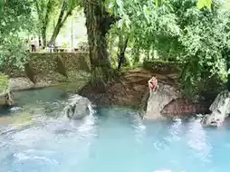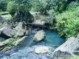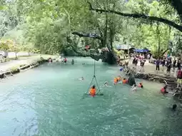 If you want to enjoy the natural beauty of Laos, head to the Blue Lagoon! 💦 A popular spot where you can enjoy Tarzan ropes and diving in a sparkling emerald green natural pool🌳🌞 Nearby is the Tham Phu Cam Cave, and it's exciting to go deeper into it as if you're exploring🦇✨