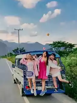 😷While riding the songthaew, you should wear a mask because there is a lot of dust in Vang Vieng city. There was also a lot of dust along the way. When I got off the car, my hair changed color 🤣