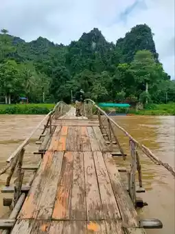 #holidayitinerary Visiting Tham Jang Cave in Vientiane Province feels like a little adventure tucked away in nature. The cave sits just outside Vang Vieng, surrounded by lush greenery and peaceful scenery. To get there, you cross a charming bridge over the Nam Song River, and then climb a set of stairs that already gives you some lovely views.