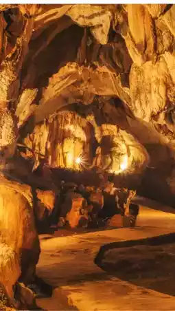 Located near the Orange Bridge, Tham Chang is a limestone cave with convenient walkways. Inside, it features a large hall and incredible natural light. At the front of the cave, there's a viewpoint offering views of the Song River and lush rice fields, perfect for relaxing and capturing memories.