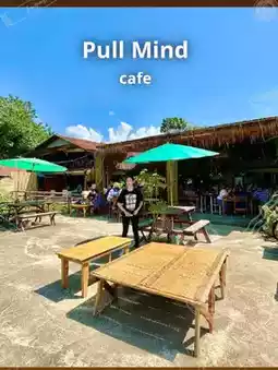 Pull Mind CafΓ© is nestled amidst a valley in Vang Vieng, surrounded by mountains and endless green fields. The atmosphere is tranquil yet vibrant. The sound of the wind and the gentle chirping of birds creates a rural village-like atmosphere with the charm of a natural resort.