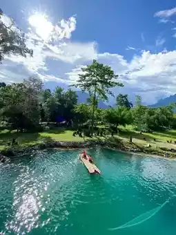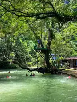 This place offers everything from lush green mountains, a crystal-clear river, and breathtaking stalactite and stalagmite caves that are so beautiful you'll feel like you've entered another world. ✨
