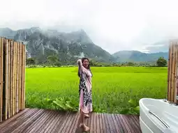 Oh, and first of all, I have to say that this place is about 20 kilometers from Vang Vieng. It's completely private, but if you're going to pubs or bars, it might be a bit inconvenient. I'm afraid I'll get drunk and fall off the rice paddies. LOL