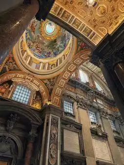 The 30m-tall bronze canopy over the main altar features four spiral columns inspired by Jerusalem's Temple, topped with papal symbols of keys and crown representing divine authority.