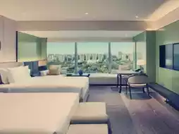 Stepping into the lobby, the crystal chandeliers reflect off the marble floors, exuding an immediate sense of luxury. The guest rooms are spacious and comfortable, with bedding as soft as clouds and panoramic city views through the windows. The bathroom features a separate wet and dry area, premium amenities, and an excellent bathing experience.