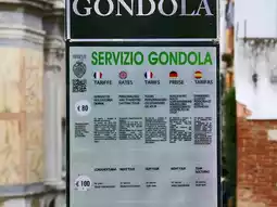 The gondola is a long, narrow wooden boat with a unique design, used for transportation along the canals of Venice, a city without roads for cars. It is considered a symbol of Venice and is popular among tourists for enjoying scenic views of the city in a romantic atmosphere, especially along the Grand Canal. The gondola is steered by a gondolier who stands at the back of the boat. The service costs €90 for 30 minutes.