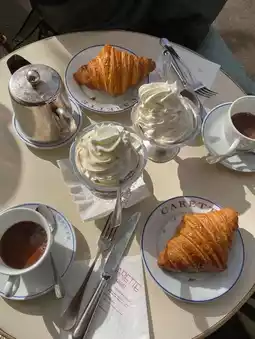 ☕ Stop by Carette Cafe near Trocadéro with a view of the Eiffel Tower. A small cafe with tea, bakery, and the aroma of coffee that is not rushed. We sat for so long that we forgot the time. It was like the whole city was just the table we were sitting at. #TravelFrance #EiffelTower