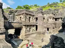 The Ellora Caves are a group of ancient caves carved from basalt rock in Maharashtra, India, near Aurangabad. They are a UNESCO World Heritage Site and a remarkable example of ancient Indian art, harmoniously blending Buddhism, Hinduism, and Jainism.