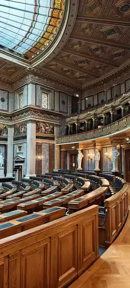 One of Europe’s most impressive parliamentary structures, inspired by Greek architecture. The iconic **Athena Fountain** stands at its entrance, while the ornate chambers inside dazzle with murals and sculptures.