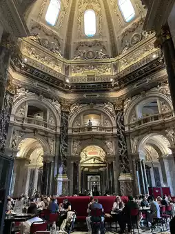The building itself is museum-quality. The ceiling painting in the stairwell and the café under the dome are breathtakingly beautiful.