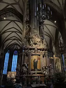St. Stephen's Cathedral, towering over Stephansplatz in the heart of Vienna, is a Gothic masterpiece representing Austria. Built in the 12th century, it boasts a striking, multi-colored tiled roof and a 137-meter-tall south bell tower.