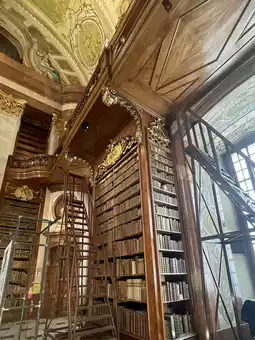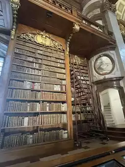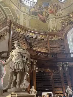 The opulent interior feels more like an art museum than a library, with stunning ceiling frescoes and intricate sculptures that captivate visitors.
