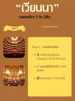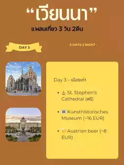 Don't miss the classic European-style cafes and the famous Sachertorte dessert. A day's cost is around €60–80, or around €220–250 for a three-day trip. You'll find culture, music, and a luxurious atmosphere within reach. 🎻