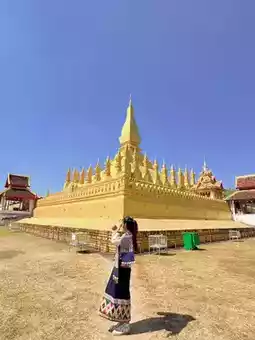 - That Luang, Vientiane: We rented Lao clothes to take pictures at the temple.