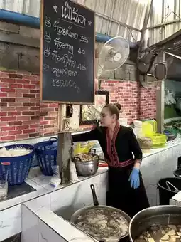 🍂 There aren’t many tourists here (but there are so many Lao people that you have to wait in line) because it’s quite far from the city center. You’ll need a motorbike to get there, and the restaurant is also in a very deep alley.