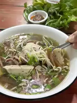 🥗 Arriving in Vientiane, a must-try food is “Pho”. There are many restaurants to choose from in the city, but if you ask the locals, they recommend “Pho Je La Restaurant in Vientiane”. You shouldn’t miss it. The restaurant only serves beef pho.