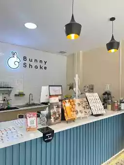 We chose to sit at the **"Pay Here"** corner... and ordered the **"Bunny Shake Set"** which came in a cute rabbit-shaped glass! The first sip... Oh my god! The sweet and sour taste of fresh fruits mixed with the coolness was so perfect that I wanted to order another glass!