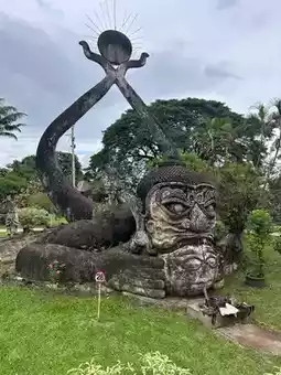 Buddha Park (Xieng Khuan) is a fascinating sculpture park located about 25 kilometers southeast of Vientiane, Laos. Created in 1958 by a local priest and artist, Luang Pu Bunleua Sulilat, the park features over 200 statues blending Buddhist and Hindu iconography. Its most famous sculpture is a giant pumpkin-shaped structure visitors can climb inside, symbolizing the cycle of life and death.