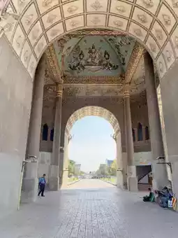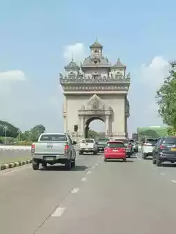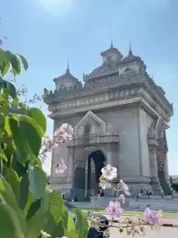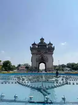 Patuxai was built to honor the soldiers who died during the World War and during the declaration of independence from France. The art in Patuxai is quite familiar to us because it is in the style of various gods, kinnari, and naga, which are very beautifully done. At Patuxai, there is a parking lot which is not far from Patuxai (parking fee is about 5,000 kip). I recommend coming in the evening. The light is more beautiful and it is not hot. #VientianeTravel #Vientiane #PatuxaiVientiane