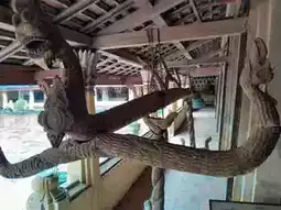 This temple acts, in part, as a temple. What descriptions of artefacts there are focus on the preserved supports and roof decorations there are, many of them hanging from the modern day roof of the temple.