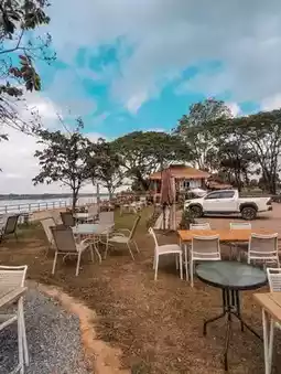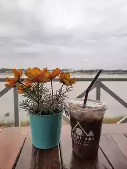 Sabai Jai Cafe & Camp is located on the banks of the Mekong River in Hat Kham Subdistrict, Mueang Nong Khai District. This cafe offers a beautiful atmosphere surrounded by nature and a stunning view of the Mekong River. You can even see the Lao PDR border on the other bank very close by. It's perfect for a meal, coffee, or relaxing in the afternoon or evening while watching the beautiful sunset over the Mekong River. It truly exudes a sense of "relaxation," just as the name suggests. I heard they have live music at night. If you've been here at night, please share your experience. I went for lunch in the afternoon and the food was delicious, and the coffee was excellent. My favorite spot was the seating under the rain trees. I wanted to open a book and lie down, enjoying the view of the Mekong River and the gentle breeze. Just thinking about it is so relaxing.