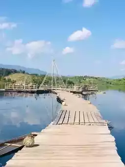 #GetDiscountsWithoutLuck Reservoir Tong is a reservoir in Muang Phueng, Vientiane Province, Laos. It's another must-see spot when visiting Muang Phueng, thanks to its stunning views. The large reservoir features a long bridge extending into the water, perfect for taking photos. There's also beautiful accommodations like the Tong View Resort, located right on the waterfront. They offer raft dining and kayaking opportunities. The tranquil setting makes it perfect for a relaxing getaway. #TongReservoir #MuangPhuengLaos #Laos
