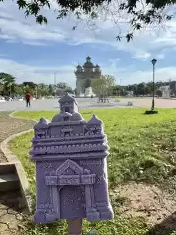 Of course, a visit to Patuxay (Victory Monument), a city landmark nestled amidst a lush park, is a must-see. The Arc de Triomphe's architecture is influenced by the Arc de Triomphe in Paris, but incorporates Laotian artistic motifs. You can also purchase Arc de Triomphe-shaped ice cream, a cute and delicious souvenir.